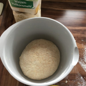 I have had luck with mixing whole wheat flour with the white flour up to a ratio of 60/40 whole wheat to white. White flour contains more gluten, which will help form a nicer dough. On the other hand, know that I have been unsuccessful in mixing rye flour with white flour – think Mischbrot (70/30 ratio). The resulting pita was too bready and not fluffy enough.