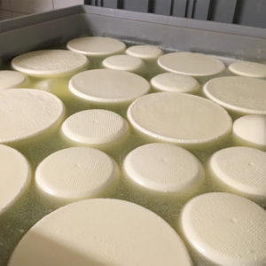 During the process of making Gouda, we add water to the vat – approximately 20 percent by volume. This does not water-down the cheese, as the whole point of making cheese is to remove as much water from the milk as possible, leaving the fat and nutrients. The idea, I am explained, is to allow better movement of the bacteria and enzymes that need to do their thing in the milk. The extremely high fat content of sheep milk would otherwise be a barrier. The water we add will be washed out after the milk coagulates.