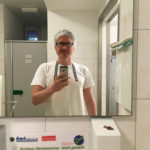 Day Two begins with the similar hygienic changing of clothes. Our task is to take the Gouda out of their forms and transfer them to a brine. We also prep the vats for a round of fresh cheese (sour cream and quark [a.k.a., Fromage blanc or frais]).